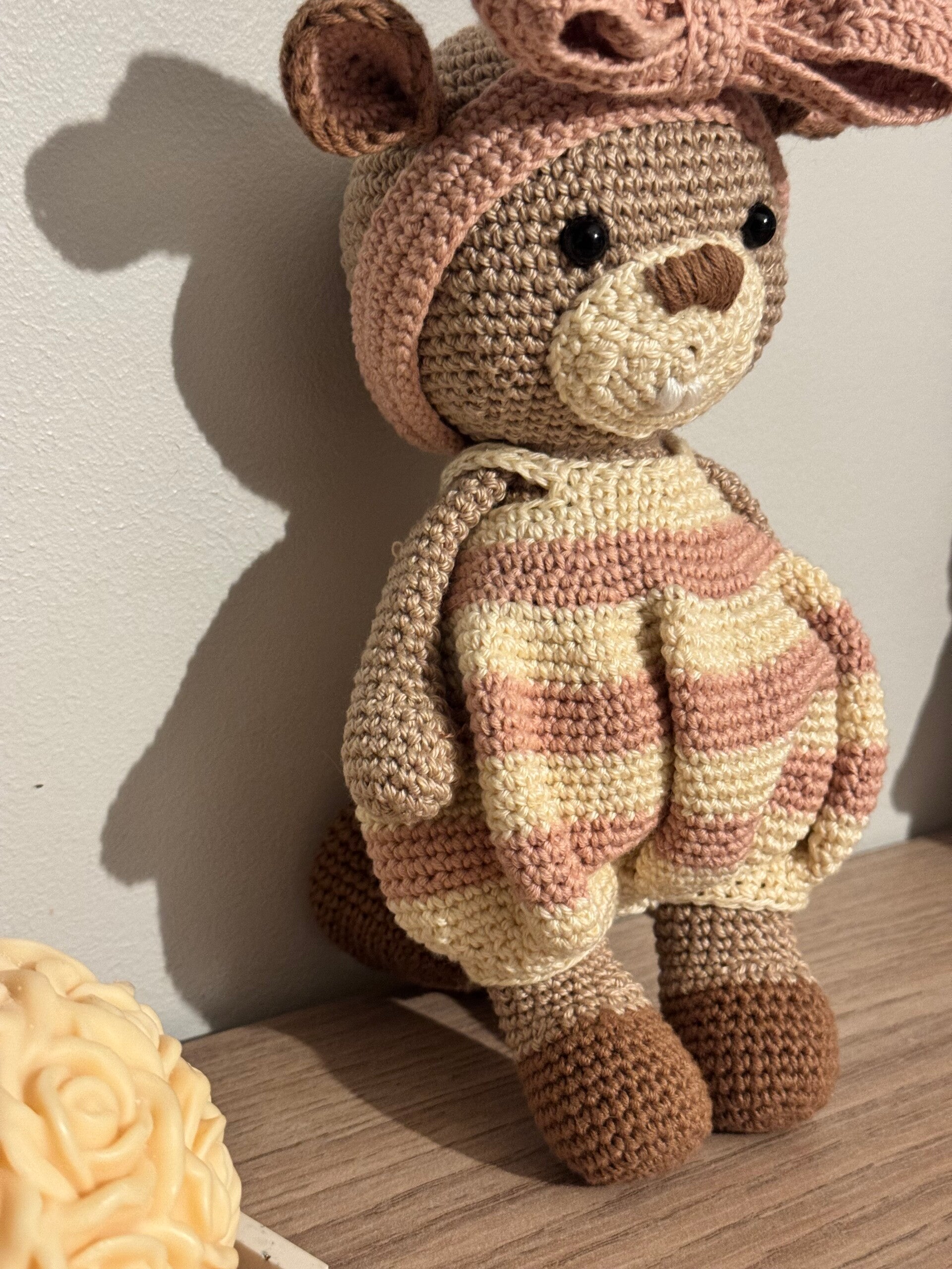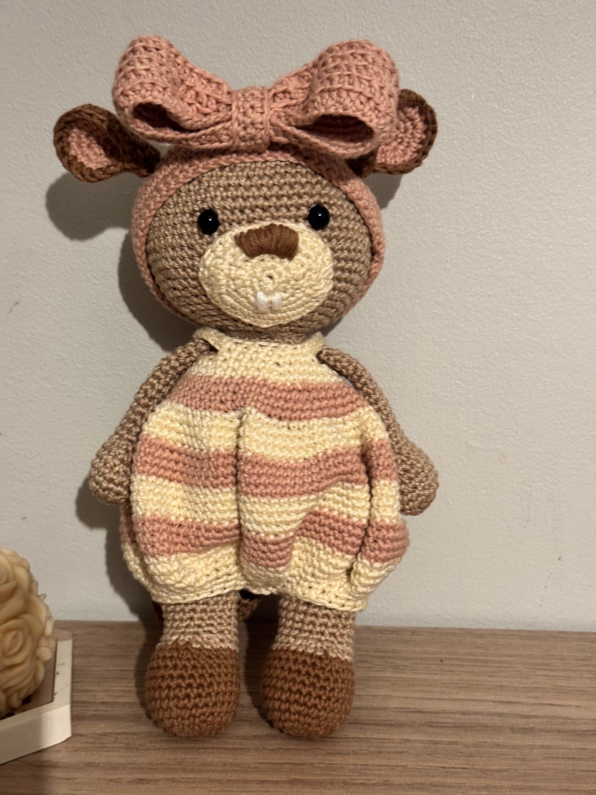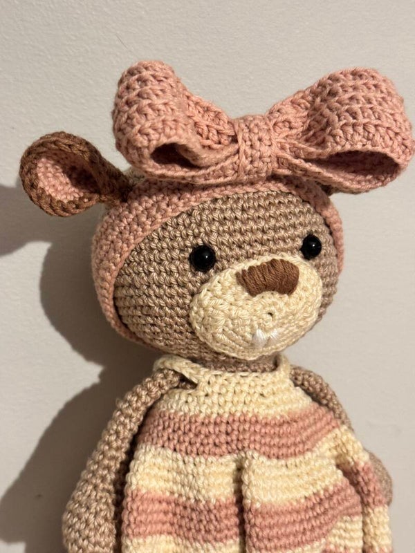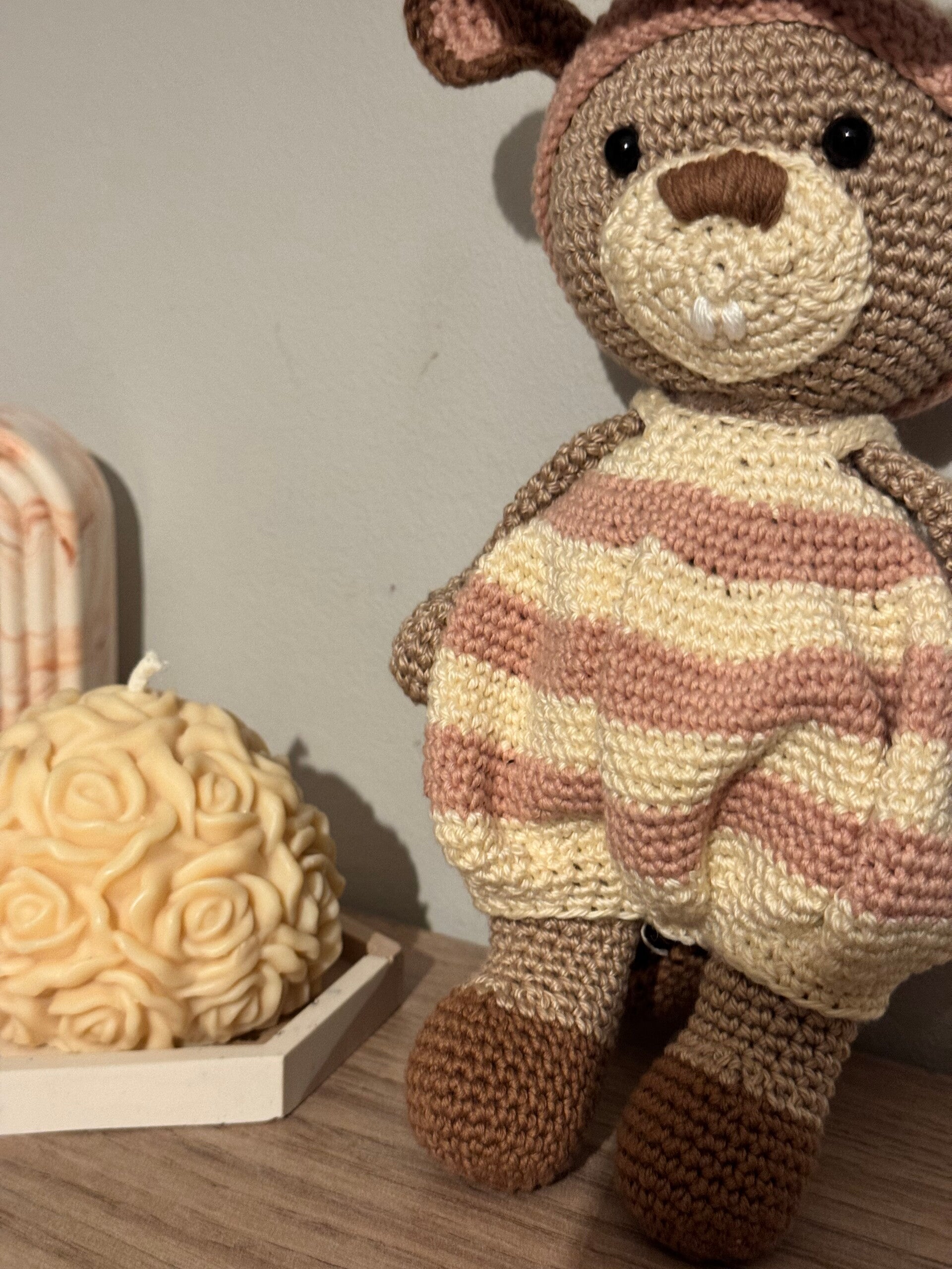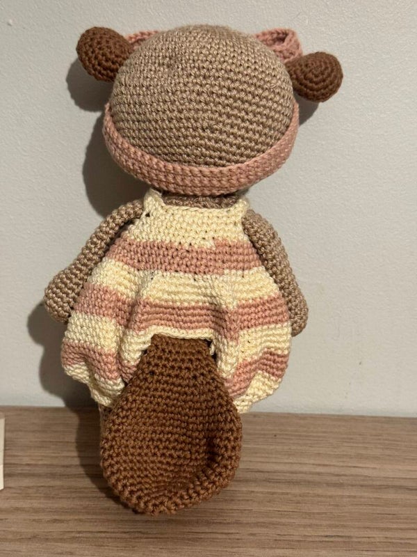Joli doudou castor réalisé entièrement à la main au crochet avec du fil coton doux et un rembourrage en ouate. Chaque peluche est confectionnée avec soin, ce qui en fait une pièce unique, parfaite pour un cadeau ou pour décorer une chambre d’enfant.